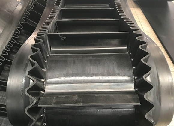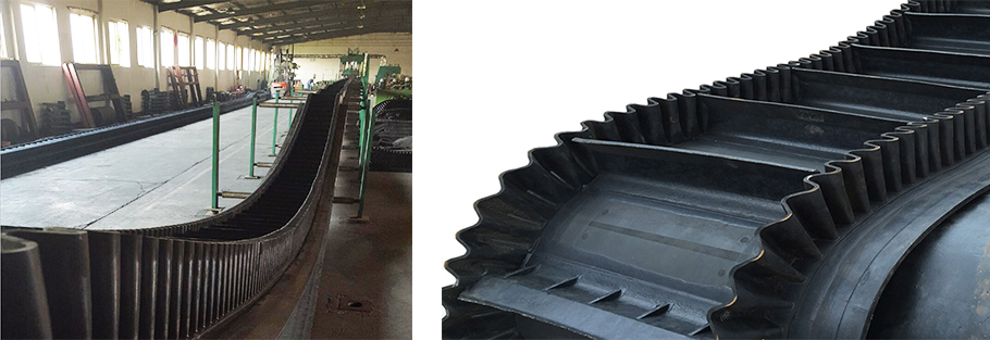 產品應用: 廣泛應用于港口、碼頭、冶金、礦山、建材、水泥、化工等領域。能以0°- 90°傾角范圍內,提升比重為0.5-2.5T/m3的各種散狀物料的特點。 產品結構與規(guī)格: 波形擋邊帶由基帶、擋邊、隔板組成,采用二次硫化工藝,使其具備了耐屈撓性高、拉力強、耐磨性好等大大提高。