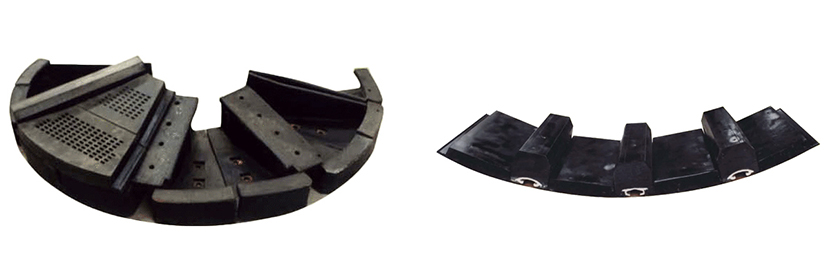 自磨機橡膠襯板是球磨機所使用的兩端部、筒體橡膠材料襯板的簡稱,又稱橡膠襯里、橡膠內襯。整套的球磨機橡膠襯板由端襯板(格柵型為花格板)、端部提升條、中心環(格柵型為中心護板)、填料、筒體提升條(又稱壓條)、筒體襯板、人孔門、緊固件等部分組成。